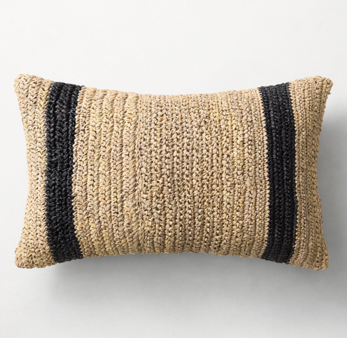 Hand crocheted from raffia, our pillow cover highlights the natural fiber's organic texture, golden shading and wabi-sabi character. Clean-lined patterns impose a modern simplicity on raffia's inherent slubs and spools, and highlight the unique variations of handcraftsmanship.